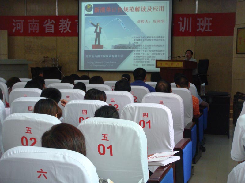2010年5月,周和生董事长在信阳“ 河南省教育系统审计干部培训班”上讲授“新清单计价规范解读及运用”和“新清单模式下建设项目管理审计”。