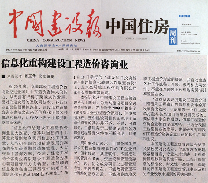 《中国建设报》对我公司召开的“建设项目投资管理与审计信息化战略合作联盟会议”进行报道
