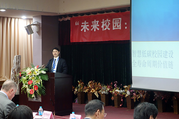 如何建设智慧低碳校园,周蕾博士有着自己的看法。他坦言校园建筑的多样化、管理的复杂性以及社会关注度决定了校园节能减排解决方案是个系统化的综合方案。通过合同能源管理机制,加强对新能源的利用是对现有校区的改造方式。对于新校园建设则需要充分利用现有的土地资源与自然景观进行规划建设,大力推广绿色建材、新型材料,同时实现项目从规划、设计到施工的运行维护一体化的网络管理平台的建设,校园综合能源检测平台系统的建立对整个校园的碳排放量进行统计,同时利用大数据原理建立高效碳排放信息库。
