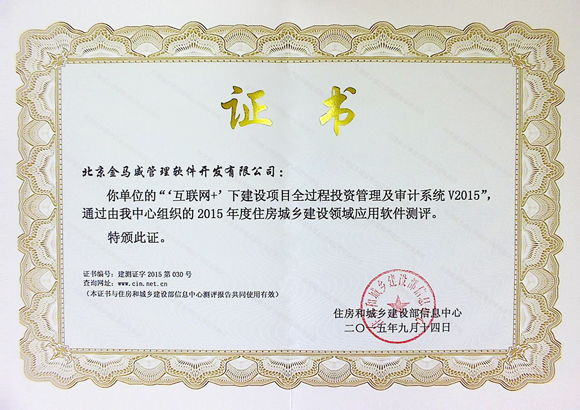 9月14日,金马威“‘互联网+’下建设项目全过程投资管理及审计系统V2015”通过住房和城乡建设部安博(中国)组织的“2015年度住房城乡建设领域应用软件测评”,并获得专家评审组成员的一致好评。