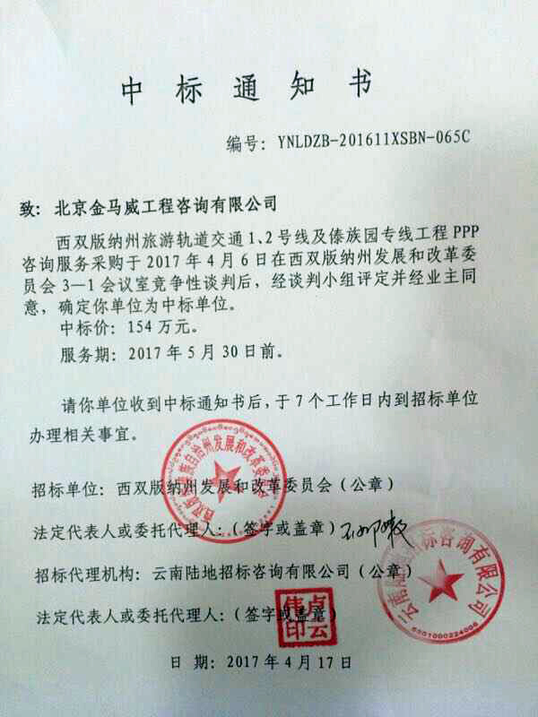2017年4月,我公司成功中标西双版纳州旅游轨道交通1、2号线及傣族园专线工程PPP咨询服务采购项目。